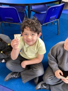 The Reception children also learnt about the Jewish festival of Passover. They learnt that Jewish people eat Matza instead of bread during this celebration as there wasn’t enough time for the bread to rise when the Jewish people tried to leave Egypt. The children were so excited to try some Matza, they were surprised by the texture and taste!